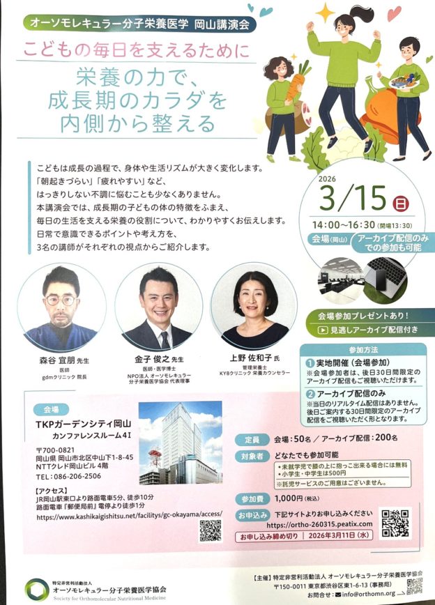 特定非営利活動法人オーソモレキュラー分子栄養医学協会の岡山講演に行ってきました。